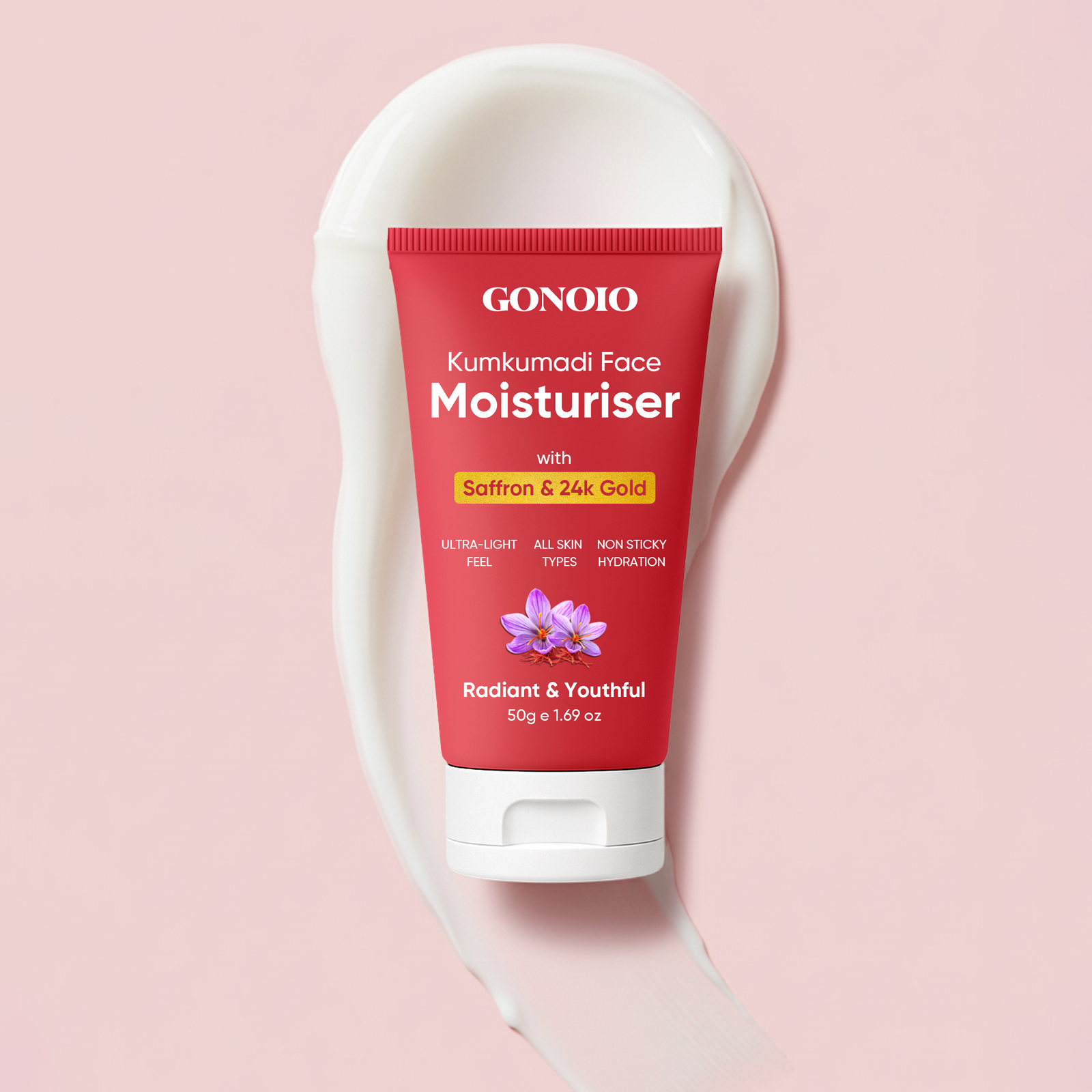 - Step 1: Squeeze out few drops of Kumkumadi Moisturiser on your hands.